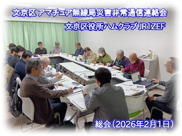 私の SNS への投稿で台東区のこの進展のない状況を知った文京区の「アマチュア無線局 災害非常通信連絡会 BARD (Bunkyo-ku Amateur Radio Disaster network)」会長 冨部哲也氏(JF1GHX)からお誘いを頂き、私は2025年11月に、BARD と文京区役所ハムクラブ(JR1ZEF)に入会させていただきました。2026年2月1日の文京区での総会(文京区役所からも総務部防災機器管理課の担当係長が出席)に私も参加しましたが、会議の中で「今後は、文京区と隣接している区のアマチュア無線家との連携も進めていく」というお話も出ました。