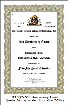 In 1971, I got my 1st amateur radio station license of JE1BQE in Taito-ku, Tokyo, and in 1976, I also got my 2nd amateur radio station license of JA9QZH in Uozu-city, Toyama Pref. I have been enjoying radio ever since. My current job (designing wireless communication equipment) is also greatly influenced by this childhood hobby.
